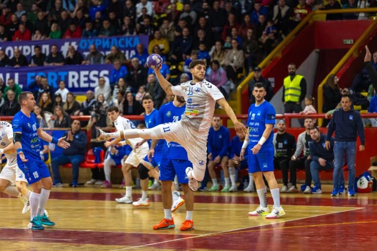 The halftime score stood at 17-11, with HC Alkaloid also suffering a major blow after Marko Stojkovic received a straight red card in the closing moments of the first half.