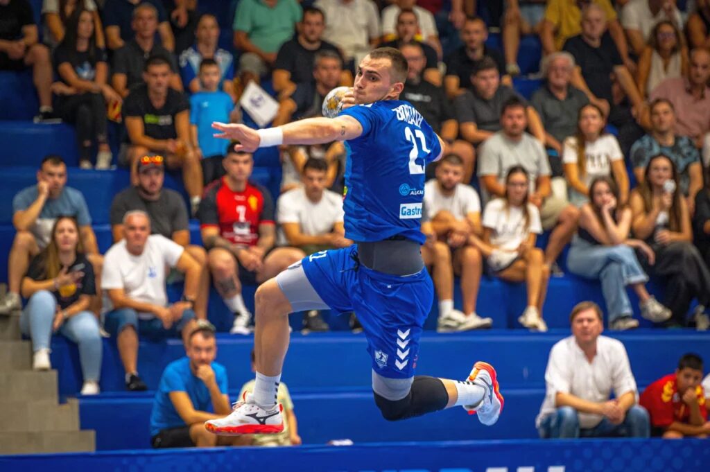 Once again spurred by the saves of goalkeeper Birlehm, Hannover took the early initiative, pulling ahead by two (4-2). The match picked up rhythm, but the visitors adjusted perfectly, building leads of 9-6 and later 12-6. The character of HC Alkaloid’s players was tested, and they rose to the challenge. Ivan Galevski had a brilliant first half, balance was restored, and we finally saw the blue-and-white in full flight, erasing a six-goal deficit in 15 minutes and heading into halftime level at 14-14.